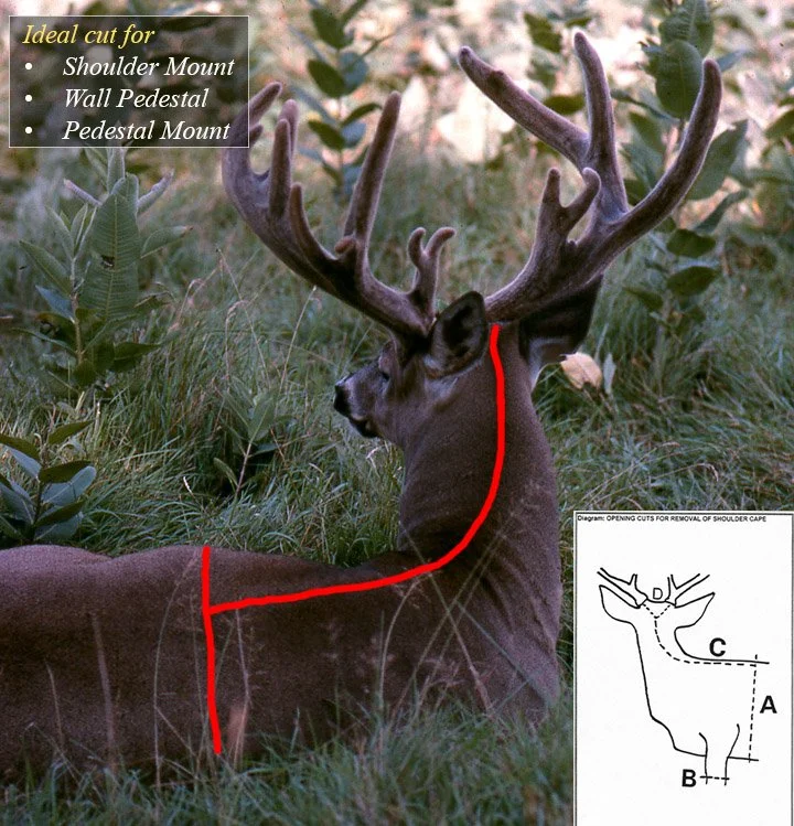 Note: When skinning, it’s always best to have more skin than you think you need. Please consider the damage done to the skin during the preservation process, either bullet or knife holes. You will want to act fast during the preservation process and keep your trophy cool and away from water. Nevada Department of Wildlife has great information and resources on how to dress your harvest properly and caping your kill. How to Dress Your Harvest Properly
